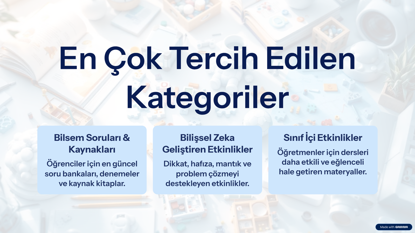 Bilsem Odaklı Ürünler: Öğrencilerin ihtiyaç duyduğu güncel soru bankaları, denemeler ve kaynak kitaplar.
